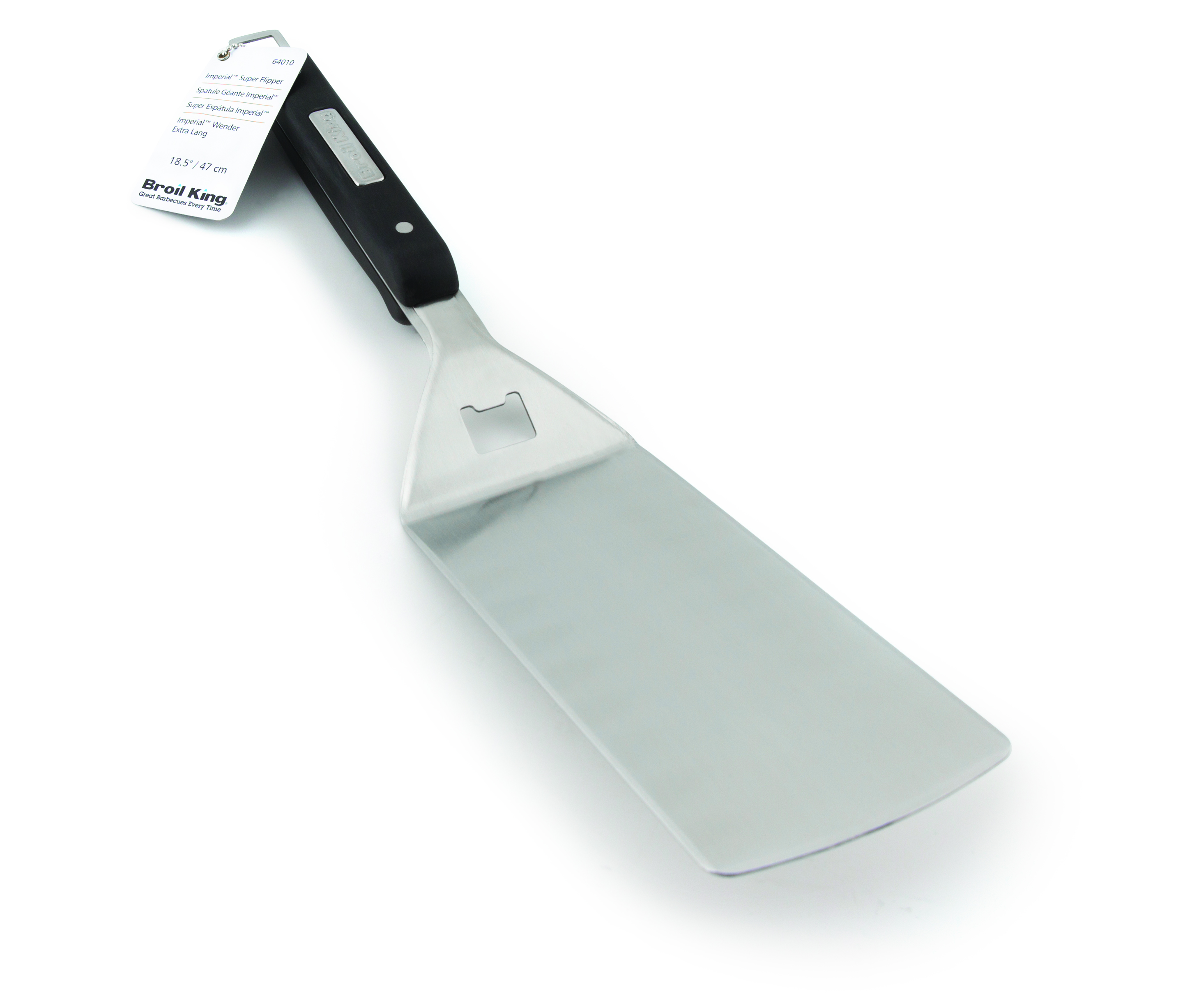 Długa łopatka Broil King Premium wykonana została z wysokiej jakości stali nierdzewnej o grubości 1,8 mm. Posiada ergonomiczną rączkę oraz praktyczny uchwyt umożliwiający zawieszenie jej  na półce każdego grilla Broil King. Dodatkowo posiada wbudowany otwieracz do butelek.