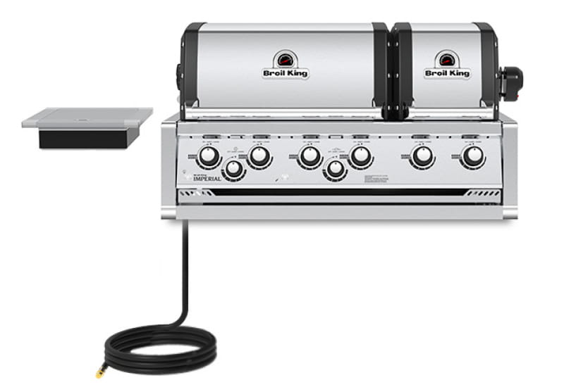 Ogrodowy grill gazowy Broil King Imperial S 690 do zabudowy, jest idealnym rozwiązaniem, dzięki któremu stworzymy profesjonalną kuchnię w ogrodzie. Jest to duży grill z dwoma niezależnymi izolowanymi piekarnikami. Wewnątrz znajduje się dwustronny podstawowy ruszt grilla o powierzchni 4753 cm² . Wykonany on został z odlewu stali szlachetnej o wyjątkowej wytrzymałości. Jego kształt z rowkami i ostrymi krawędziami zapewnia wszechstronność grillowania i pozwala bardzo łatwo utrzymać go w czystości. Grill gazowy Broil King Imperial S 690 do zabudowy posiada także kuchenkę boczną przygotowaną do zamontowania w blacie z boku grilla.