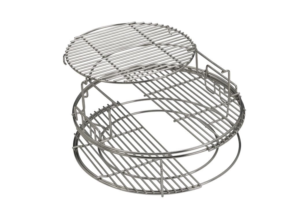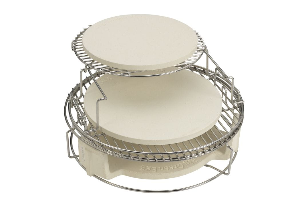 5 częściowy zestaw na akcesoria Big Green Egg, to zestaw koszy i rusztów powiększających powierzchnię grillowania. Dzięki niemu możemy umieścić w grillu jednocześnie, ruszty, płyty żeliwne i stalowe oraz kamienie ceramiczne do pizzy, chleba czy lasagne. Zestaw składa się z dwuczęściowego stojaka wielopoziomowego, kosza ConvEGGtor i dwóch półek ze stali nierdzewnej.
