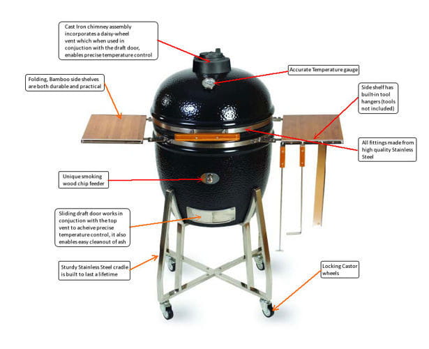 MONOLITH z dodatkową płytą ceramiczną idealnie nadaje się do pieczenia pizzy lub chleba tak jak w tradycyjnym piecu. Użyteczny zakres temperatur wynosi od 70 °C do 400 °C. Dzięki wyjątkowej wydajności Grill potrzebuje niewiele energii do wytworzenia i utrzymania żądanej temperatury. Można pracować w zakresie niskich temperatur z 3 kg ładunku węgla do 24 godzin. Mięso w piecach kamado nie wysycha i pozostaje soczyste. Jeśli chcesz szybko zrobić 2 steki, to nie jest problem. Przez efekt komina węgiel jest rozpalany bardzo szybko. Grill ma bardzo dobre uszczelnienie pomiędzy grillem i paleniskiem co pozwala go szybko wygasić i węgiel może być wykorzystany następnym razem.