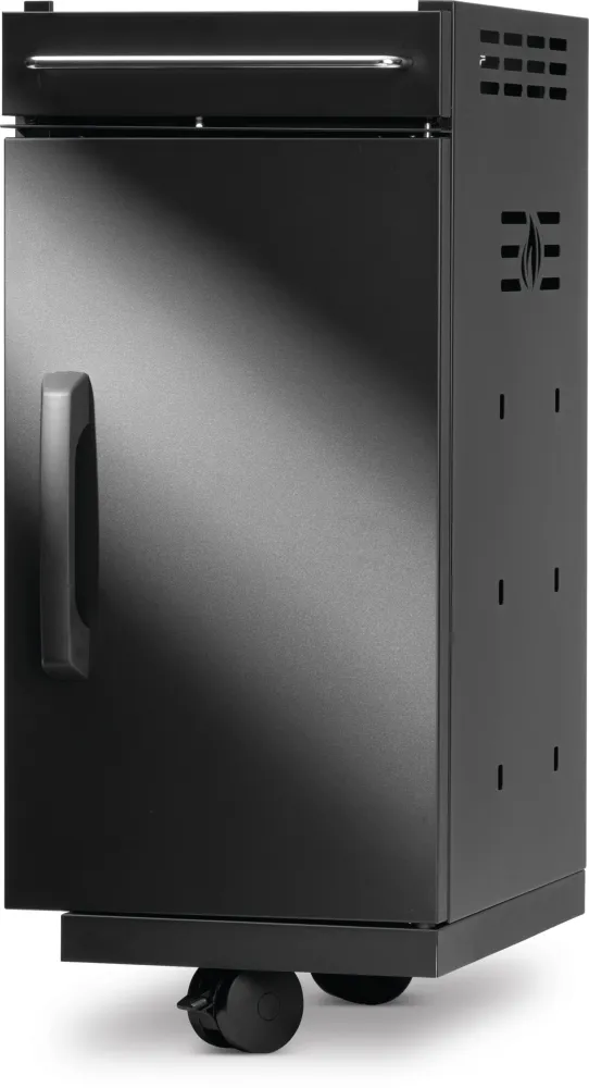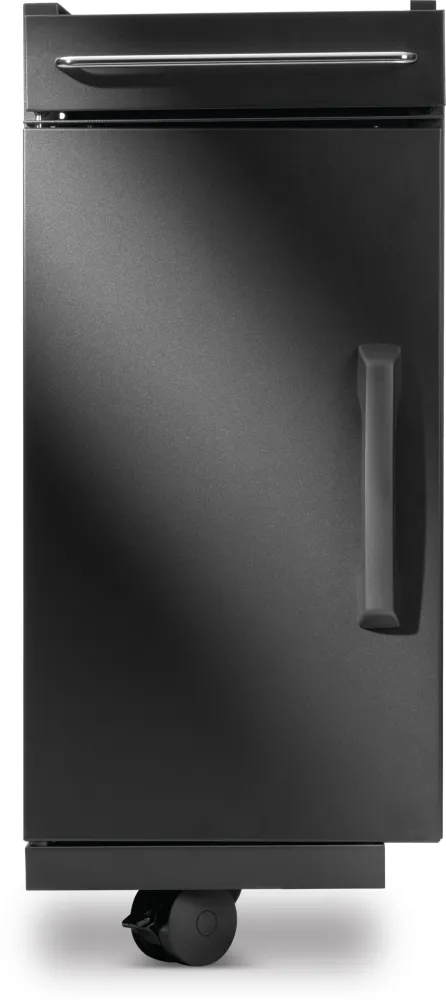 Solidna konstrukcja szafki i nowoczesny czarny matowy design doskonale komponuje się z grillem. Szafka jest mocowane do bocznej ściany korpusu grilla pod pólkami bocznymi co zapewnia stabilną wygodę użytkowania. Zestaw zawiera uniwersalną lewą/prawą szafkę wyposażoną w praktyczną szufladę oraz górny blat roboczy. Wnętrze szafek wypełnia organizer oraz uchwyt na akcesoria. Szafki zmieszczą wszystkie niezbędne przybory do grillowania i zapewnią porządek podczas grillowania.