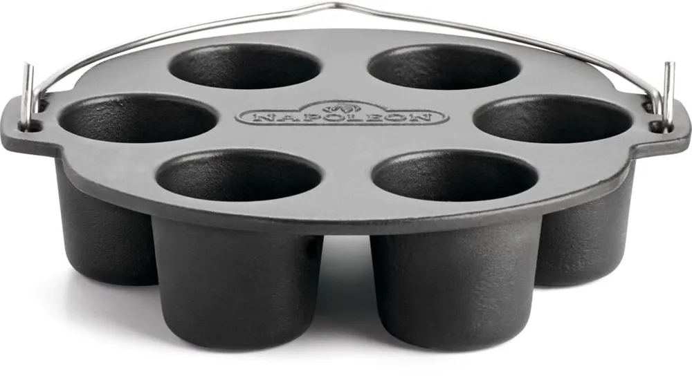 Żeliwna forma z wgłębieniami oraz uchwytem do wyjmowania z grilla to gratka dla miłośników muffinek. Wykonana jest z wysokiej jakości odlewanego żeliwa. W sześciu głębokich foremkach umieszczamy ciasto i grillujemy smaczne muffinki. Oczywiście możemy ją wyjąć z grilla przy pomocy silikonowych lub skórzanych rękawic.