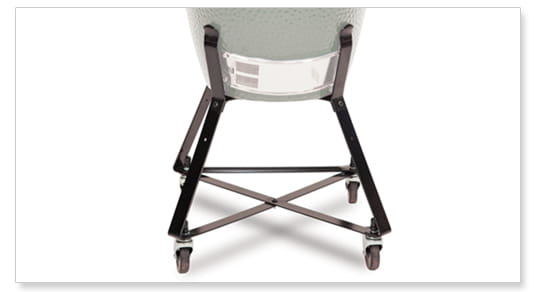 Podstawa wyposażona jest w cztery stabilne koła z blokadą ruchu dzięki czemu ustawisz ją zawsze tam gdzie chcesz. Wysokość wózka sprawia, że grillujesz na odpowiedniej wysokości i nie musisz się schylać by obsługiwać grill. Elementy podstawy wykonane są z solidnej stali i pomalowane trzykrotnie proszkowo, aby zabezpieczyć przed korozją.
