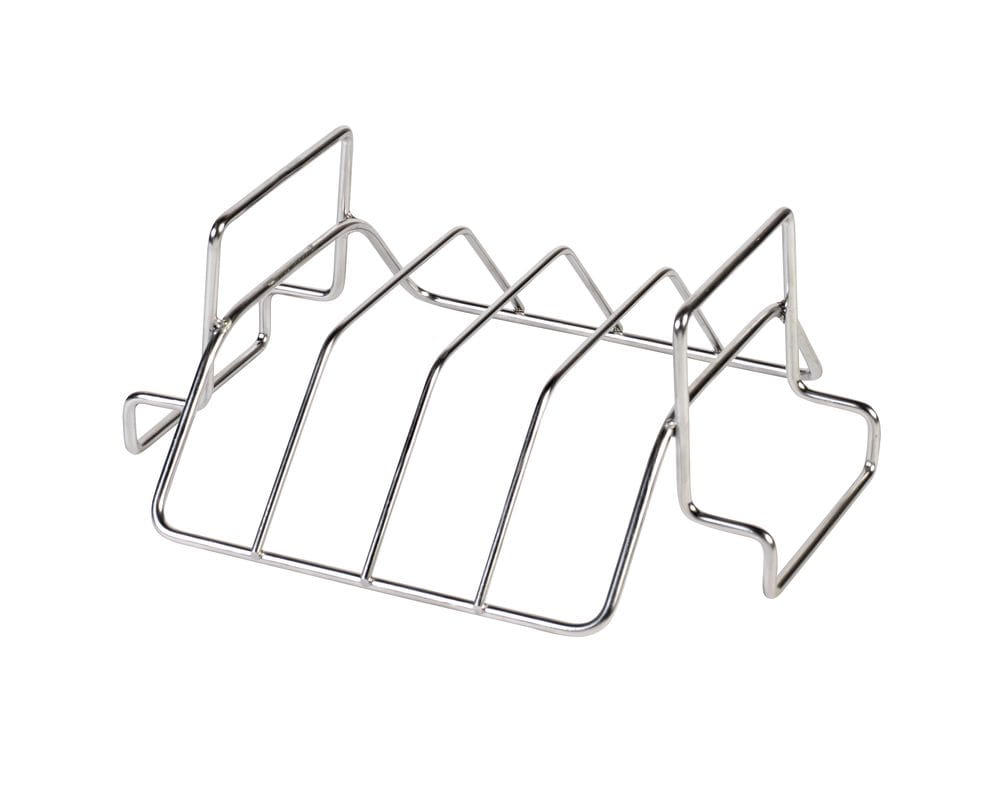 Stojak składa się ze stalowych wsporników dostosowanych do grillowania żeberek na stojąco. Grillowanie w pozycji pionowej sprawia, że grillowane żeberka smażą się we własnym tłuszczu. Możemy też za jego pomocą grillować duże pieczenie, wystarczy tylko go odwrócić. Jego zaletą jest fakt, że potrawy poddawane są stałemu przepływowi gorącego powietrza i są idealnie grillowane dookoła.Stojak jest bardzo łatwy w czyszczeniu ponieważ wykonany jest ze stali nierdzewnej.