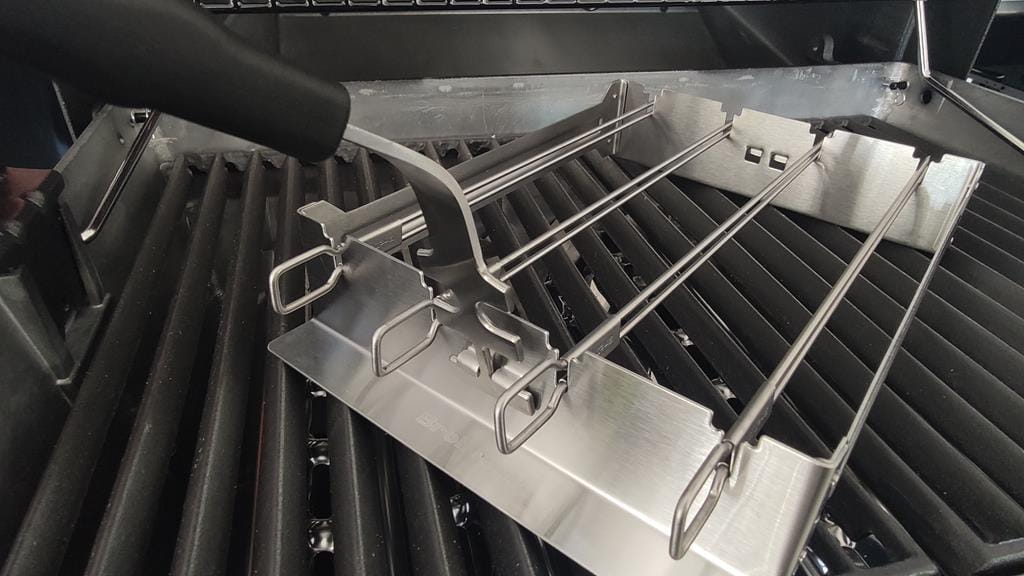 Wielofunkcyjny uchwyt służy między innymi do podnoszenia rusztów i jest bardzo przydatny gdy zamierzamy przełożyć ruszt naszego grilla na drugą stronę, lub wymienić go na płytę żeliwną. Dzięki uchwytowi możemy to zrobić w dowolnym momencie grillowania, ponieważ konstrukcja uchwytu pozwala na podniesienie nawet bardzo rozgrzanego rusztu, bez obawy o poparzenie. Uchwyt służy również do wyjmowania i ustawiania  w rozgrzanym grillu, wąskiego Woka i wąskiej brytfanny produkcji Broil King.