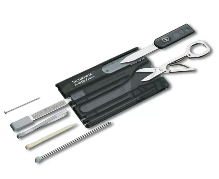 Swiss Card z 10 funkcjami zaskoczy Cię, jak wiele narzędzi udało nam się zmieścić w niewielkiej obudowie Swiss Card. Zdziwisz się również, jak często będziesz korzystać z tych ukrytych w płaskiej, niepozornej karcie przyrządów. Jeśli dodamy do tego przemyślany, wielokrotnie nagradzany design i niesamowitą funkcjonalność, otrzymujemy zestaw, z którym ciężko się rozstać. Kolejną zaletą Swiss Card jest kształt i rozmiar – narzędzie z łatwością zmieści się w każdym portfelu.